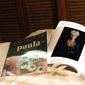 À la base, Paula était mon projet de fin d’études, je l’ai fait évoluer vers ce qu’il est aujourd’hui, plus diversifié, plus complet (142 pages), avec de nombreuses interviews d’artistes talentueux, photographes et illustratrices en France et à l’étranger. Il y a également une partie où je présente des marques aux initiatives éthiques et responsables dans leur façon de produire. J’ai entièrement réalisé la direction artistique, le shooting, la couverture et l’écriture des interviews. C’était un travail long et conséquent, mais je suis fière d’avoir réussie à mener un projet de cette envergure qui porte et présente le beau travail de personnes passionnées et/ou engagées dans de belles causes.