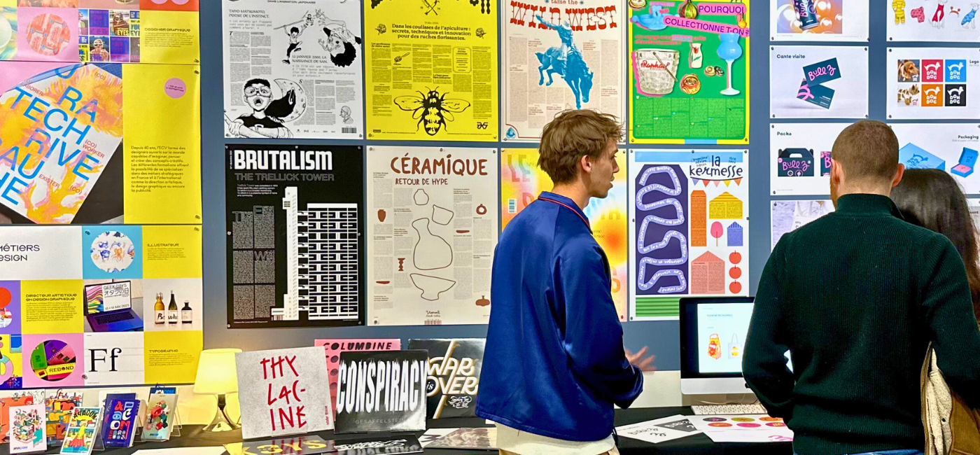 Durant une matinée immersive au sein de l’École de Création Visuelle de Bordeaux, idéalement située dans le quartier historique des Chartrons (riche en studios de création, en lieux d’expositions et en événements culturels), les étudiants et leur équipe pédagogique vous invitent à découvrir l’aboutissement de leurs études. En cette période de choix d’orientation post-bac et de formation supérieure, il est essentiel de trouver un sens à ses études : à quoi vont servir mes compétences ? Nos étudiants seront présents pour vous transmettre leur vision créative et l’intention professionnelle derrière leurs Projets de Fin d’Études.