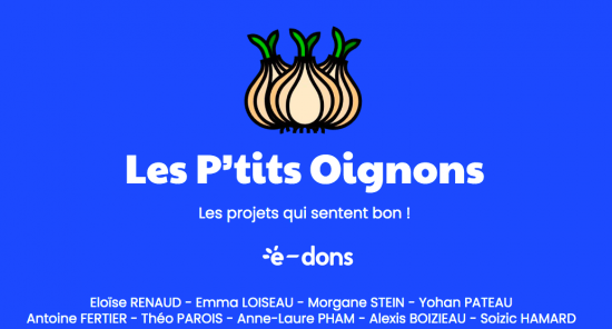 Nous avons interrogé l’équipe gagnante du grand prix du jury : Les P’tits Oignons avec leur projet É-dons, une plateforme d’inclusion sociale pour lutter contre l’illectronisme. Retrouvez les autres projets et mentions en bas de page. Bonne lecture 😉
