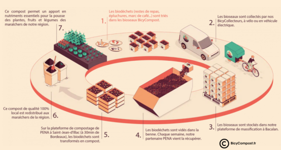 BicyCompost propose un service de collecte des bio-déchets zéro carbone pour les revaloriser en compost et en assurer la redistribution auprès des maraîchers locaux.
