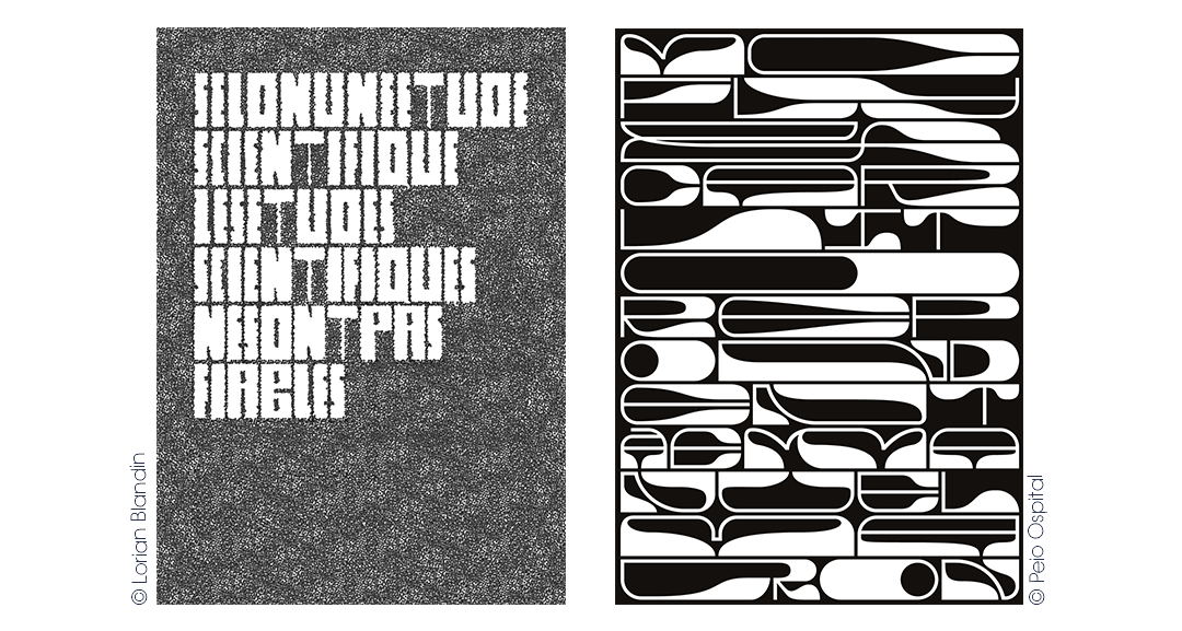 Toute la semaine, Loris Pernoux a apporté son expertise pour permettre à nos étudiants d’expérimenter la création typographique de manière ludique sur la thématique “Clair de loin, mais loin d’être clair.”