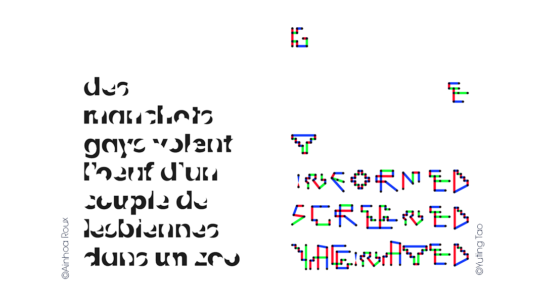 Entre déclarations politiques incohérentes ou faits divers improbables, l’absurde s’invite parfois dans les gros titres. Comme base de travail, chaque étudiant devra chercher un extrait d’article, une phrase, un titre d’actualité à faire résonner avec son design et jouer avec son message. Il s’agit de travailler sur la frontière entre la clarté et l’abstraction d’un dessin typographique. Chercher l’illisibilité parfaite, en trouvant le juste équilibre pour que le message mis en forme soit au minimum du compréhensible.